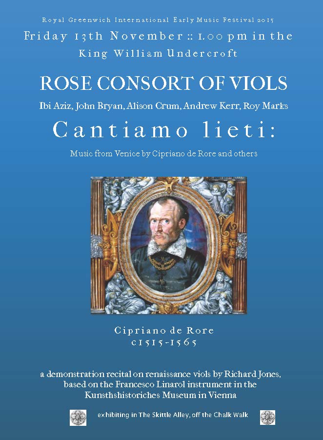 On Saturday November 11th th at 12.30 pm The Rose Consort of Viols (Ibi Aziz, John Bryan, Alison Crum, Andrew Kerr and Roy Marks ) will give a ‘Maker's Demonstration Recital’ using the Linarol Viols in the The Quaker Meeting House, 2 Lawn Terrace.Blackheath SE3 9LL